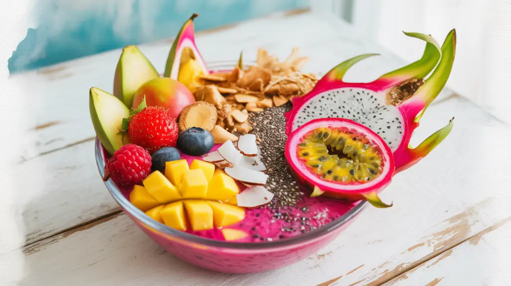 Питайя, или драконий фрукт, — настоящая находка для смузи-боулов. Её нежный вкус и потрясающий цвет делают завтрак по-настоящему особенным.